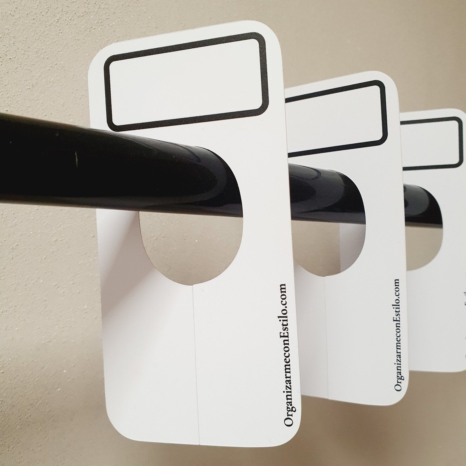 Optimiza tu armario con nuestros separadores de perchas rectangulares. Duraderos y versátiles, personalízalos con bolígrafo indeleble o pegatinas para identificar categorías, tallas o edades.